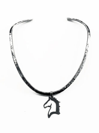 Metal collar necklace and horse head pendant